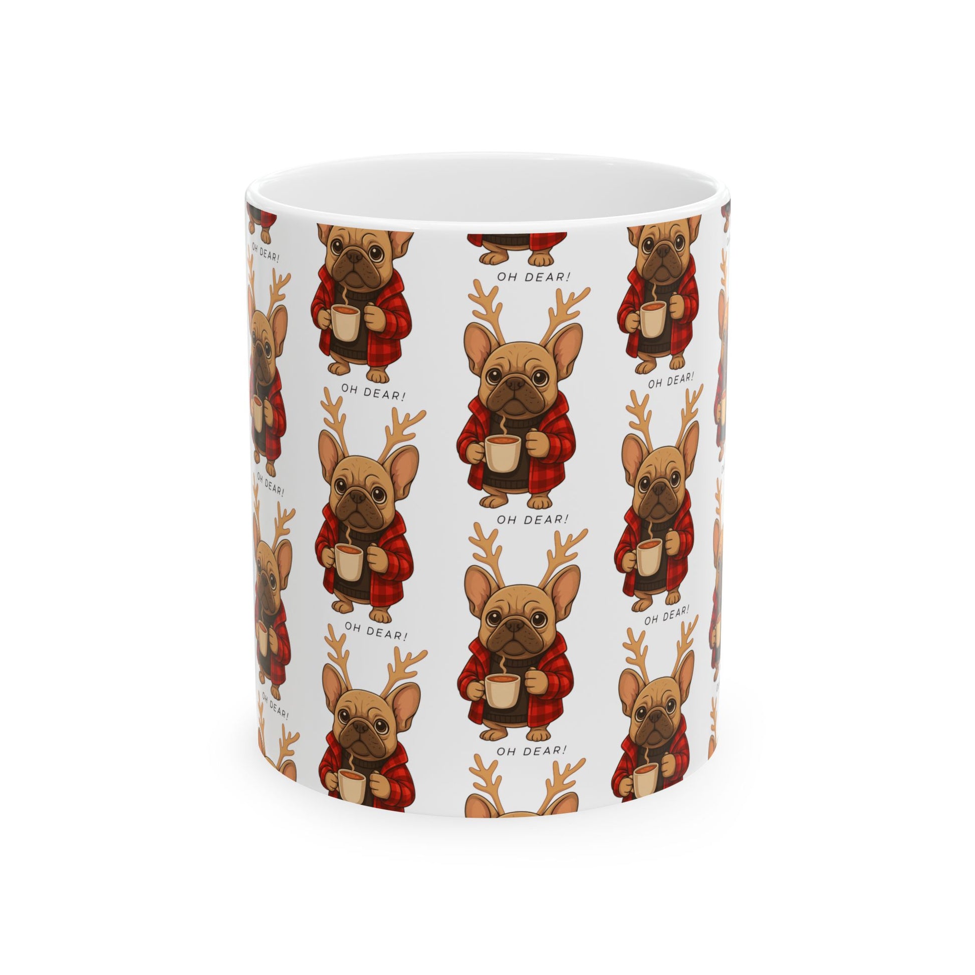 Christmas Reindeer French Bulldog Mug – Cute Cozy Holiday Coffee Cup (11oz, 15oz)