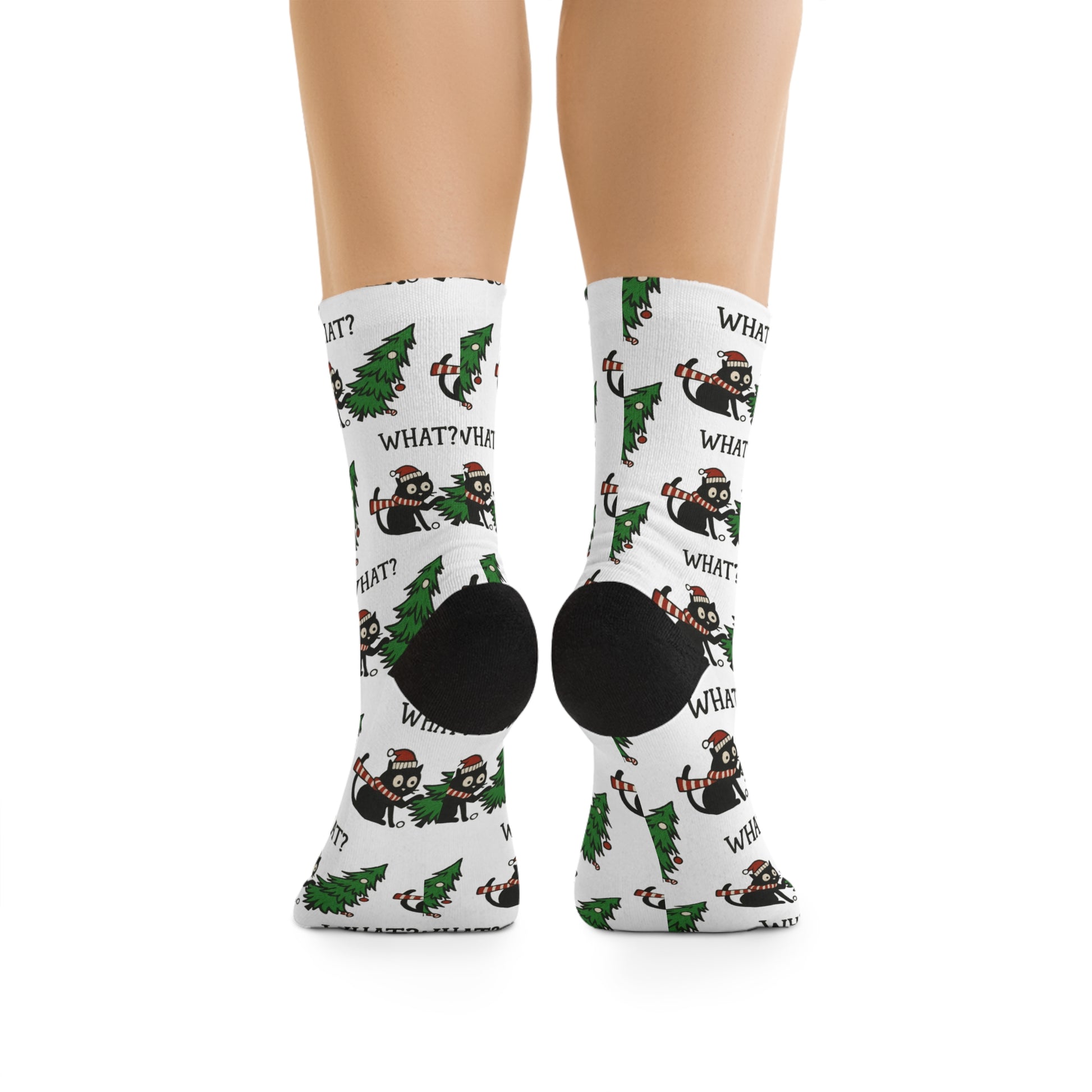 These recycled-poly socks bring playful holiday mischief to your everyday wear. Soft yet sturdy, the all-over print shows a cheeky raccoon and pine tree pattern with tiny “WHAT?!” captions — a wink for people who like a little irreverent humor in their seasonal wardrobe. The 200-needle knit gives a smooth, detailed finish so the graphics stay crisp across the cuff and foot. Because the yarn is mostly recycled polyester, they feel lightweight and stretchy while cutting down on new plastics. Wear them with ankle boots, slippers, or while lounging by twinkling lights; they add a quirky, warm touch to laid-back winter nights and casual gift exchanges.