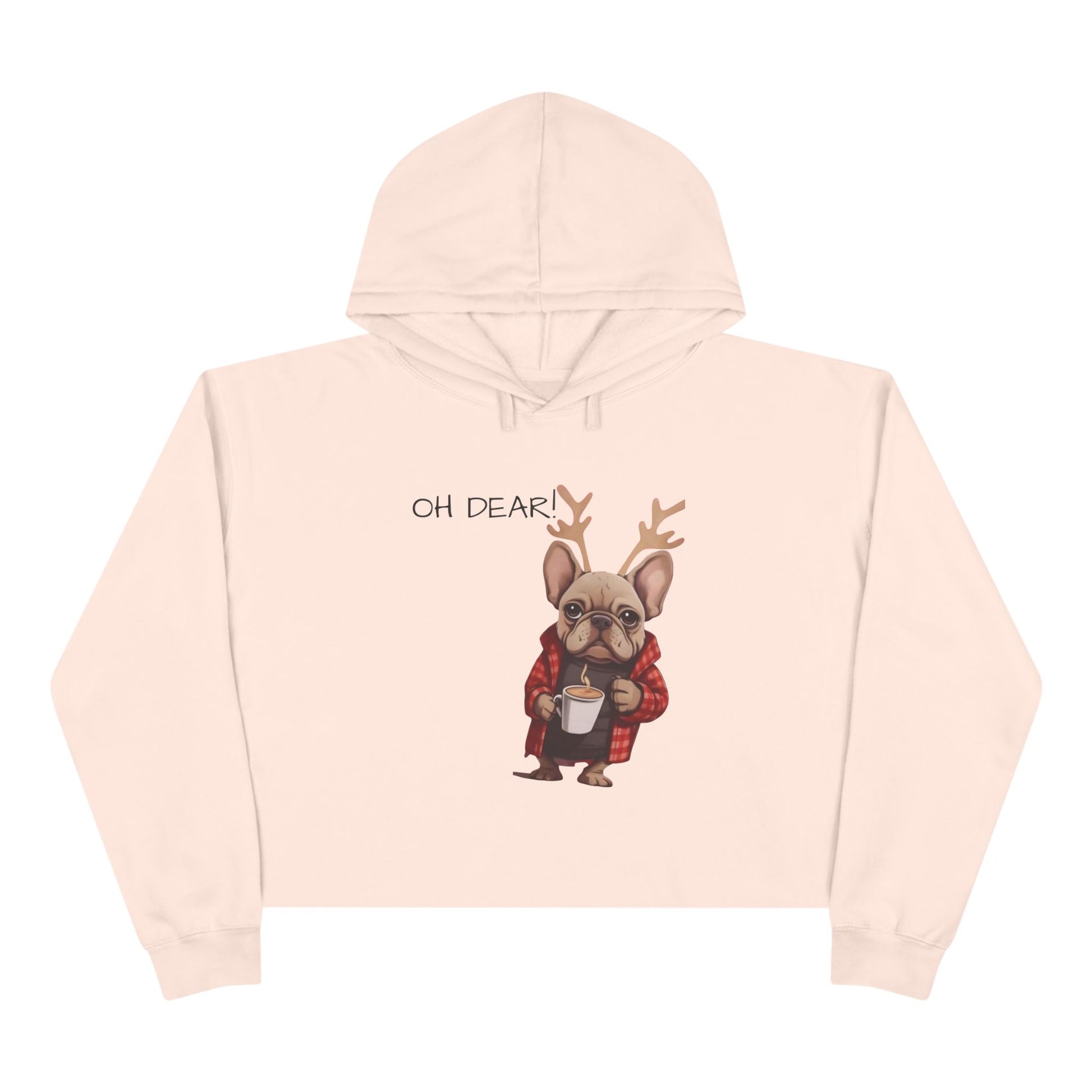 Oh Dear French Bulldog Reindeer Crop Hoodie